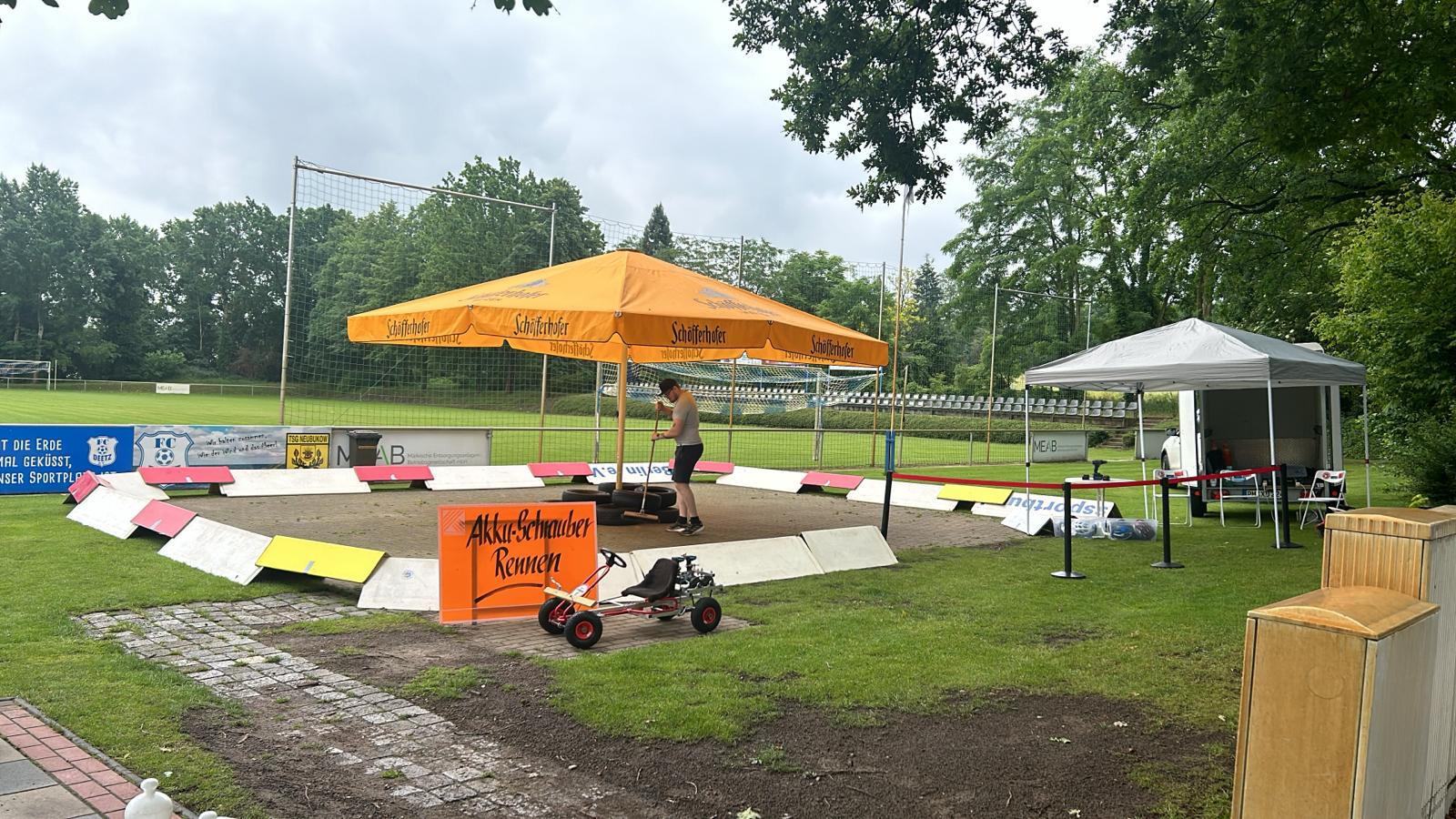In wenigen Stunden wurde der Parkplatz durch den Akkuschrauberverein und den vielen fleißigen Helfern zur Rennstrecke umgebaut.