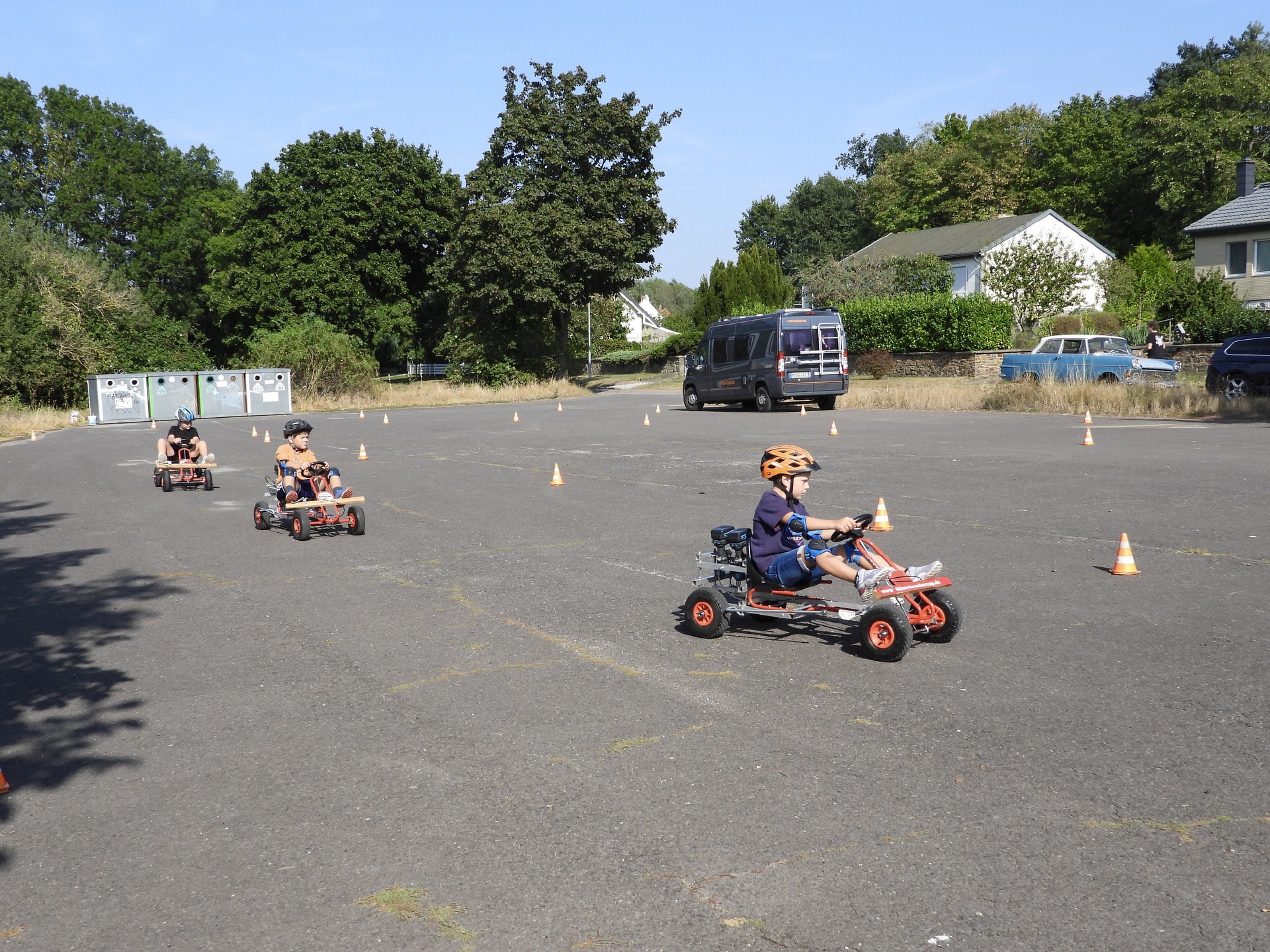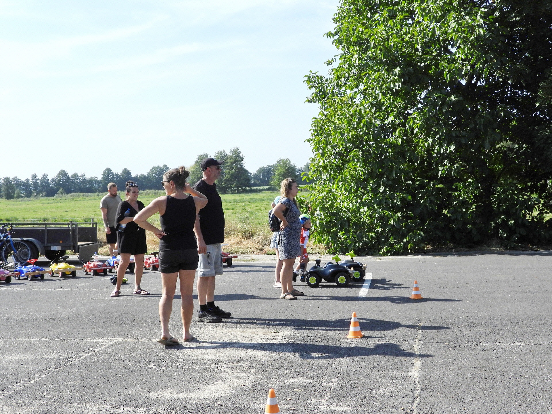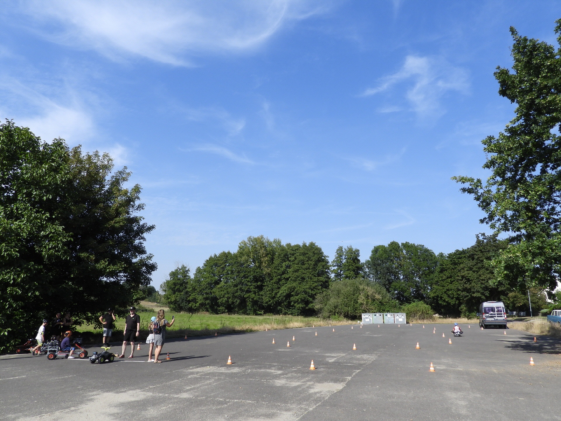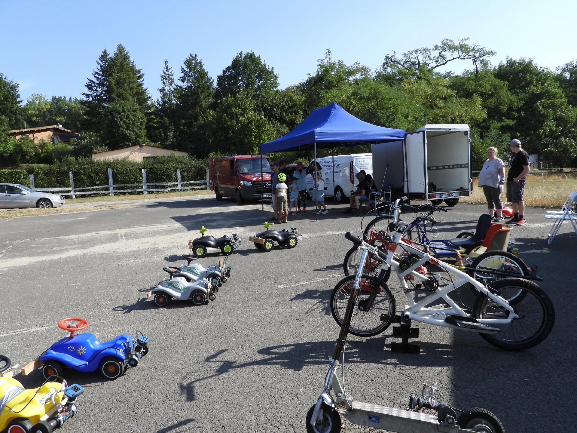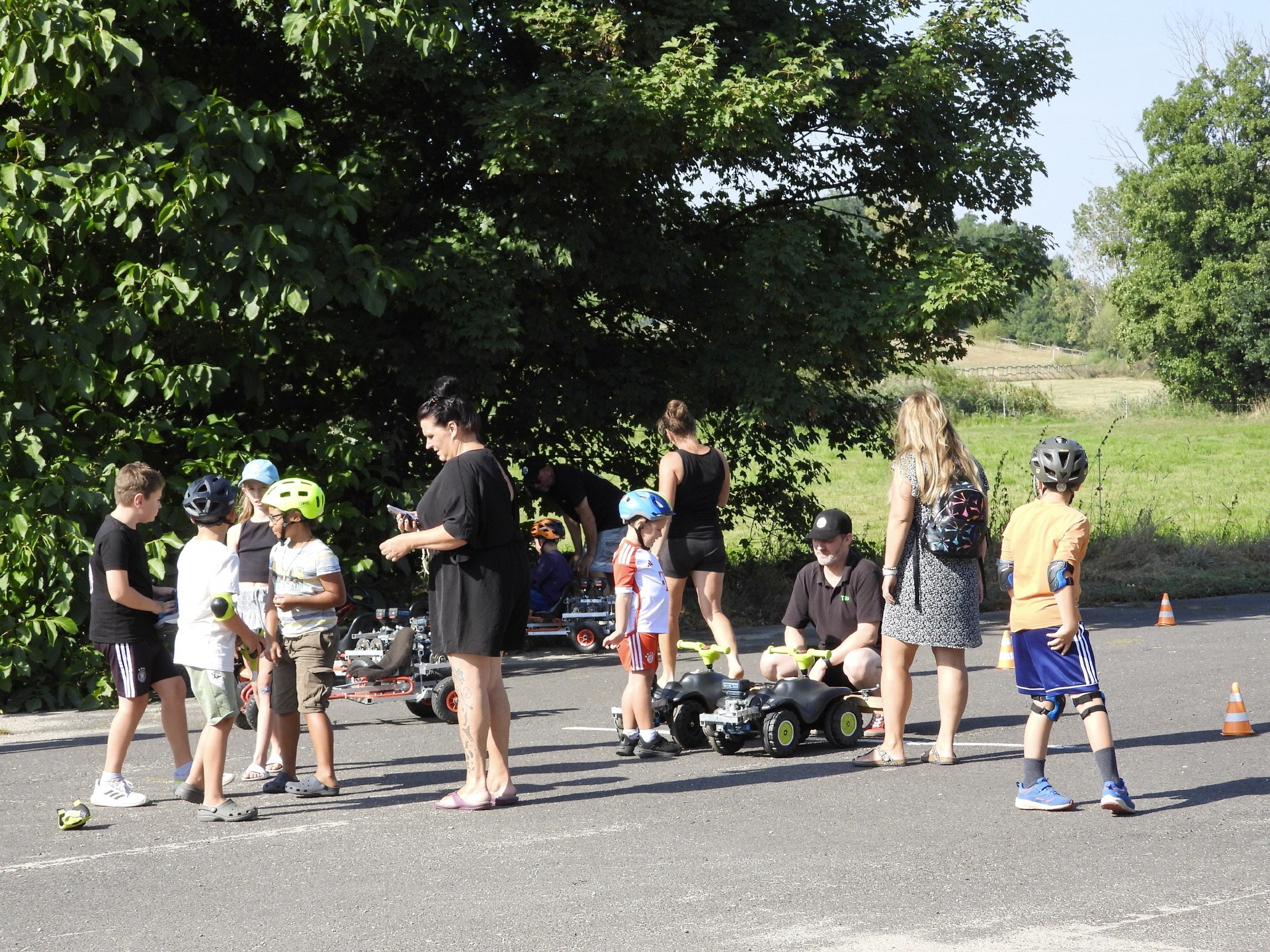 Erfreulicherweise fanden sich, neben den Vereinsmitgliedern, Bastlern und Schraubern, zahlreiche Gäste sowie Familien mit Kindern am Rennplatz ein und nutzten die Gelegenheit zum Testen der Technik. Die Kids waren begeistert und drehten auf dem Platz Runden um Runden.